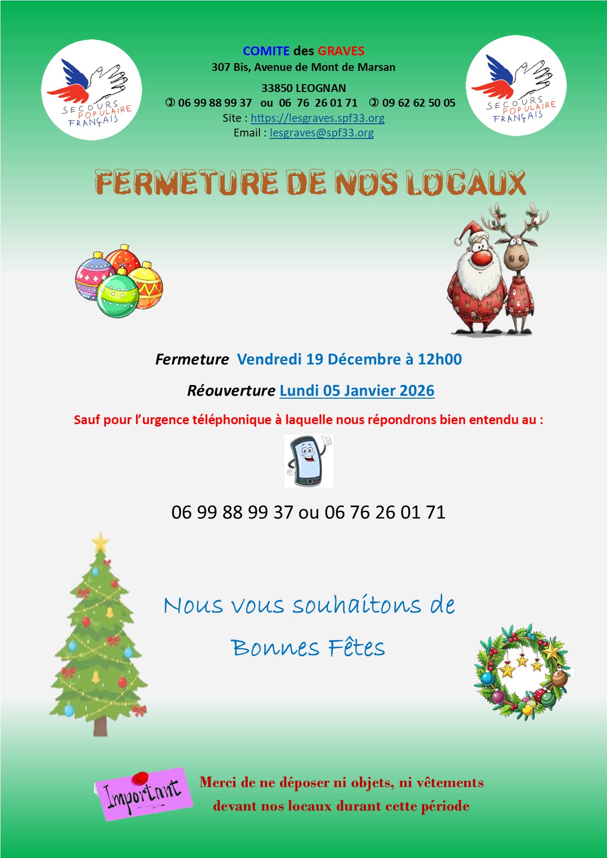 La distribution alimentaire se fait désormais dans nos nouveaux locaux, avenue de Mont de Marsan. Inscription le mardi, rendez-vous à prendre par téléphone au : 06 99 88 99 37 ou le 06 76 26 01 71 |
